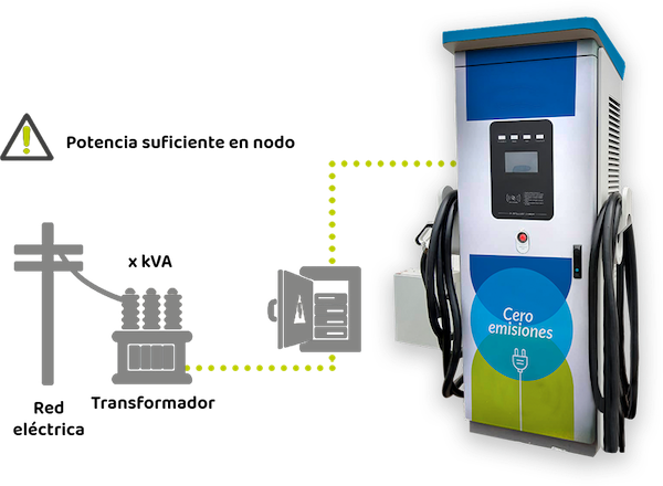 La infraestructura de recarga utilizada incluye un cargador que transforma la corriente alterna en corriente directa de modo que la energía se pueda almacenar en las baterías del autobús. Este cargador tiene una potencia de 150 kW que permite recargar la batería del autobús en 3.5 horas.