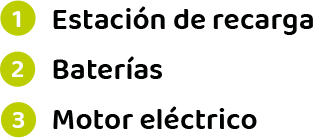 Un vehículo eléctrico consta de un motor eléctrico y baterías que almacenan energía. La alimentación se da a través de estaciones de recarga.